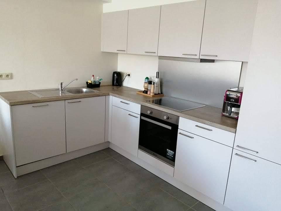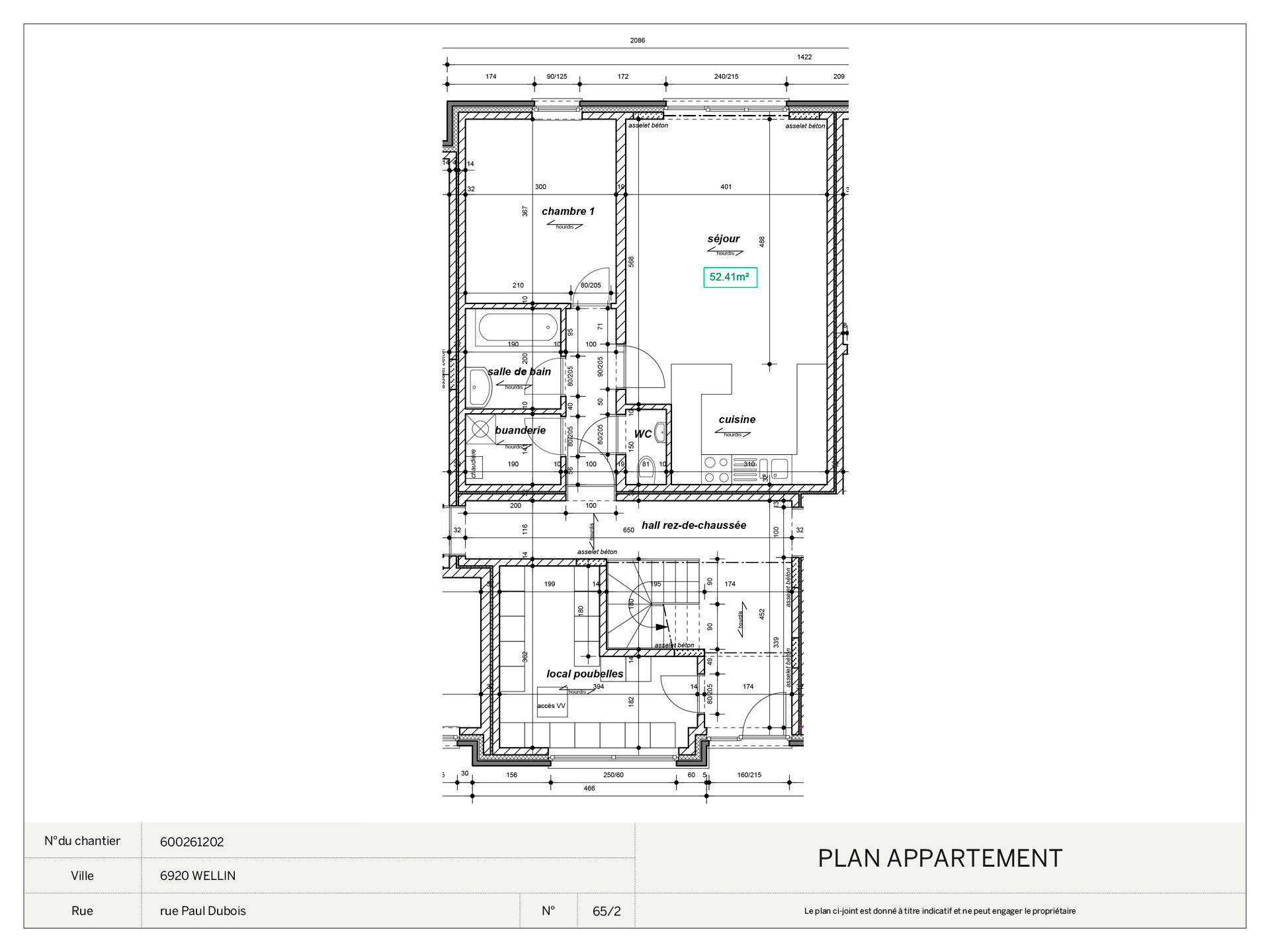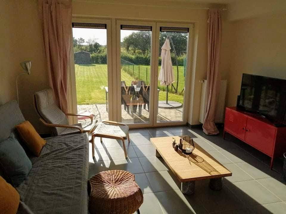 - un séjour ouvert sur une cuisine équipée (lave-vaisselle, four, hotte, plaque vitrocéramique, frigo), d'une salle de bains avec baignoire et meuble lavabo, d'une buanderie, d'un WC, d'une chambre et d'un beau jardin clôturé avec terrasse.