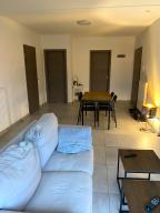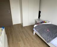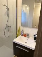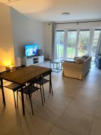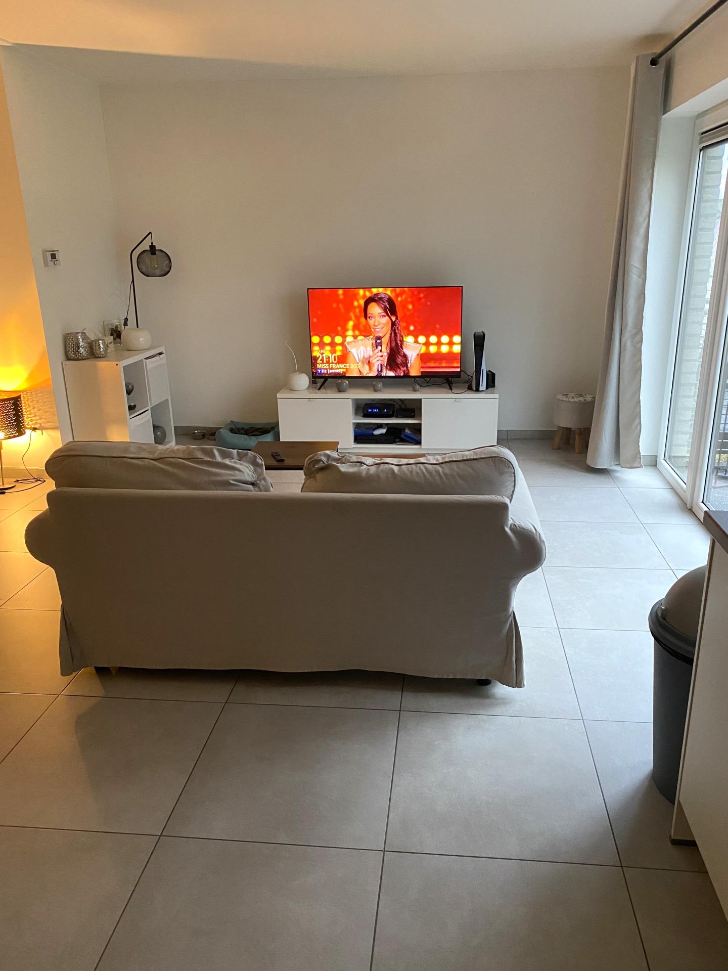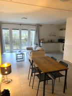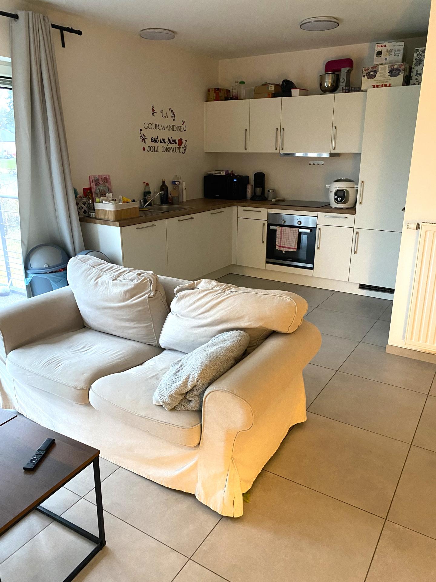 Un grand séjour ouvert sur une cuisine équipée (frigo, hotte, plaque vitrocéramique et lave-vaisselle), d'une salle de douches avec meuble lavabo et WC, de deux chambres et d'une petite terrasse.