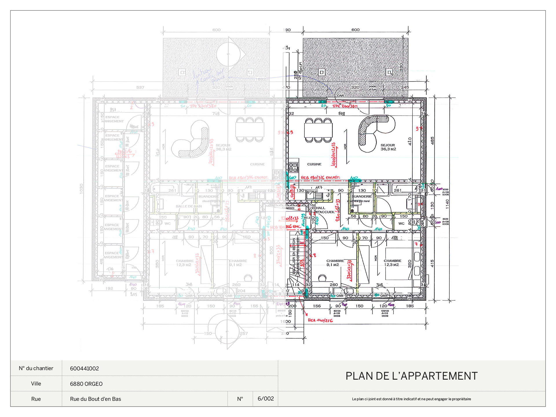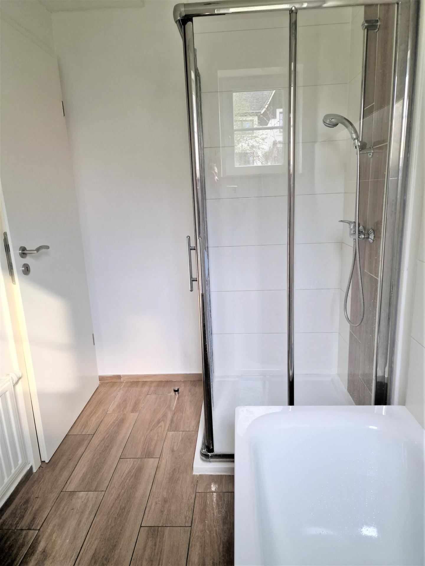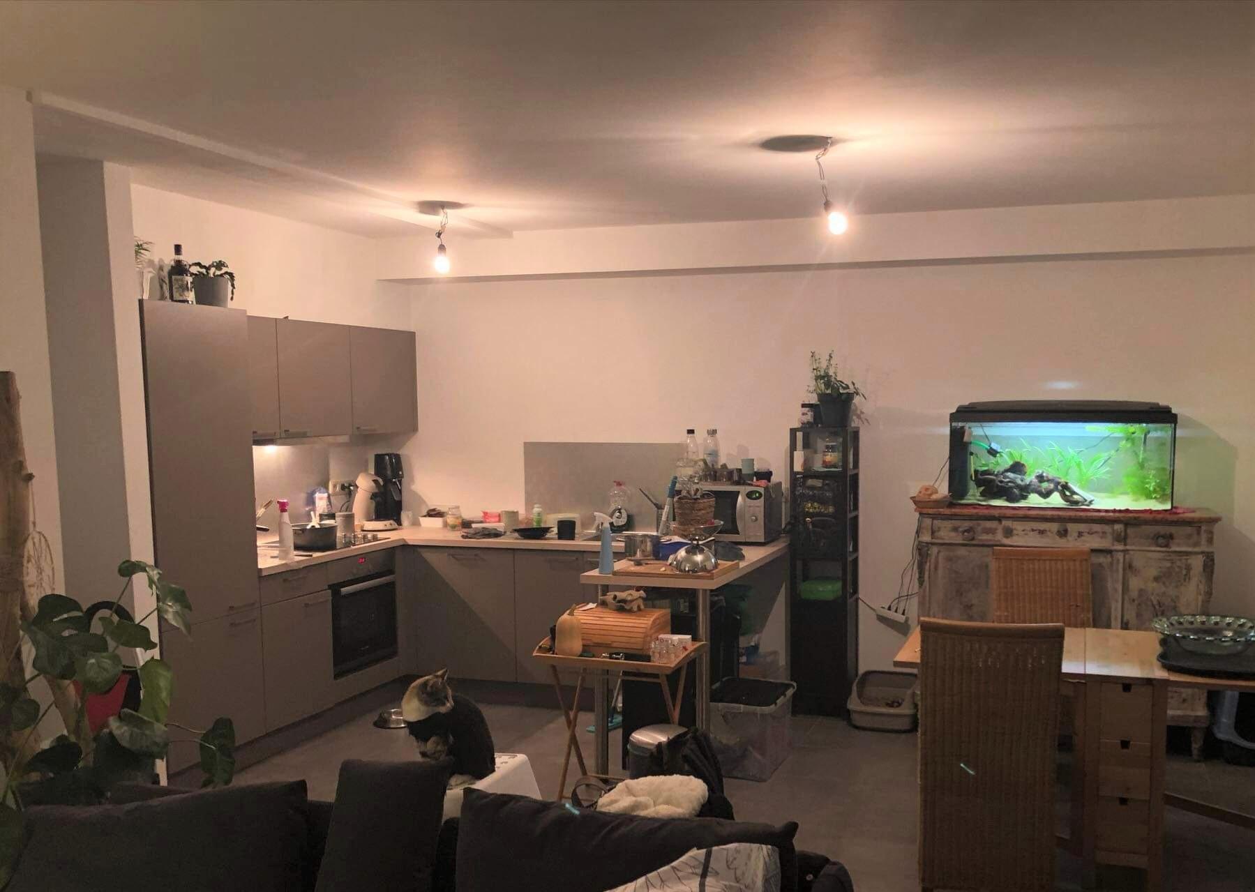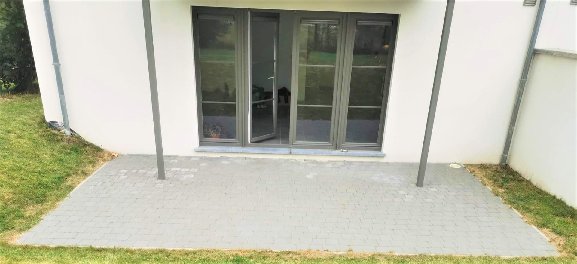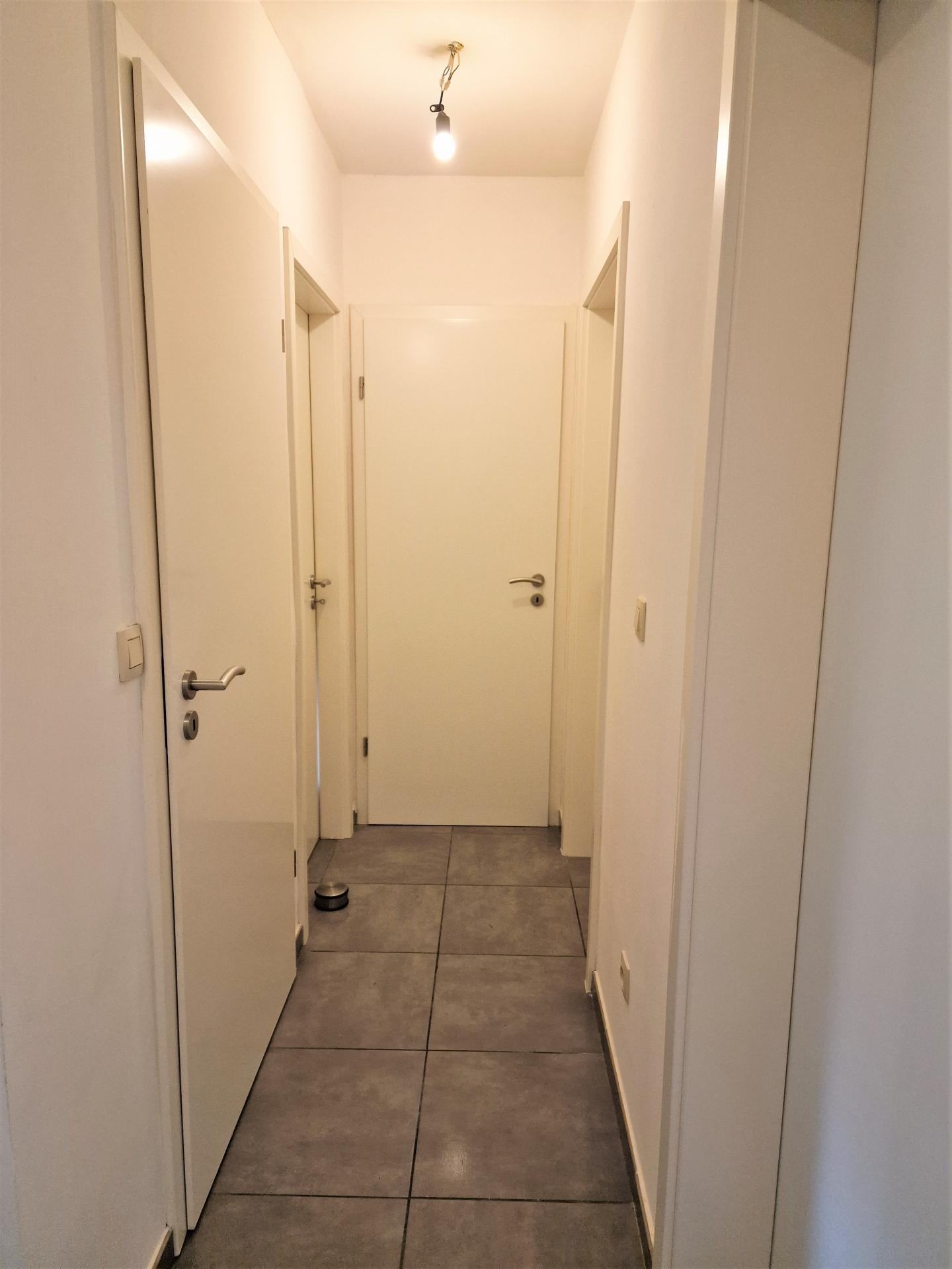Superbe logement situé au rez-de-chaussée d'un petit immeuble de 6 appartements. Celui-ci est composé d'un hall d'entrée, d'un beau séjour avec une cuisine équipée ( four, hotte, plaque vitrocéramique, frigo et lave-vaisselle ), d'une buanderie, d'une salle de bains avec douche, baignoire et meuble lavabo et de deux chambres ( 9 & 12.3m² ). Celui-ci comporte également un jardin avec terrasse, une place de parking privative ainsi qu'un petit local cave privatif également.