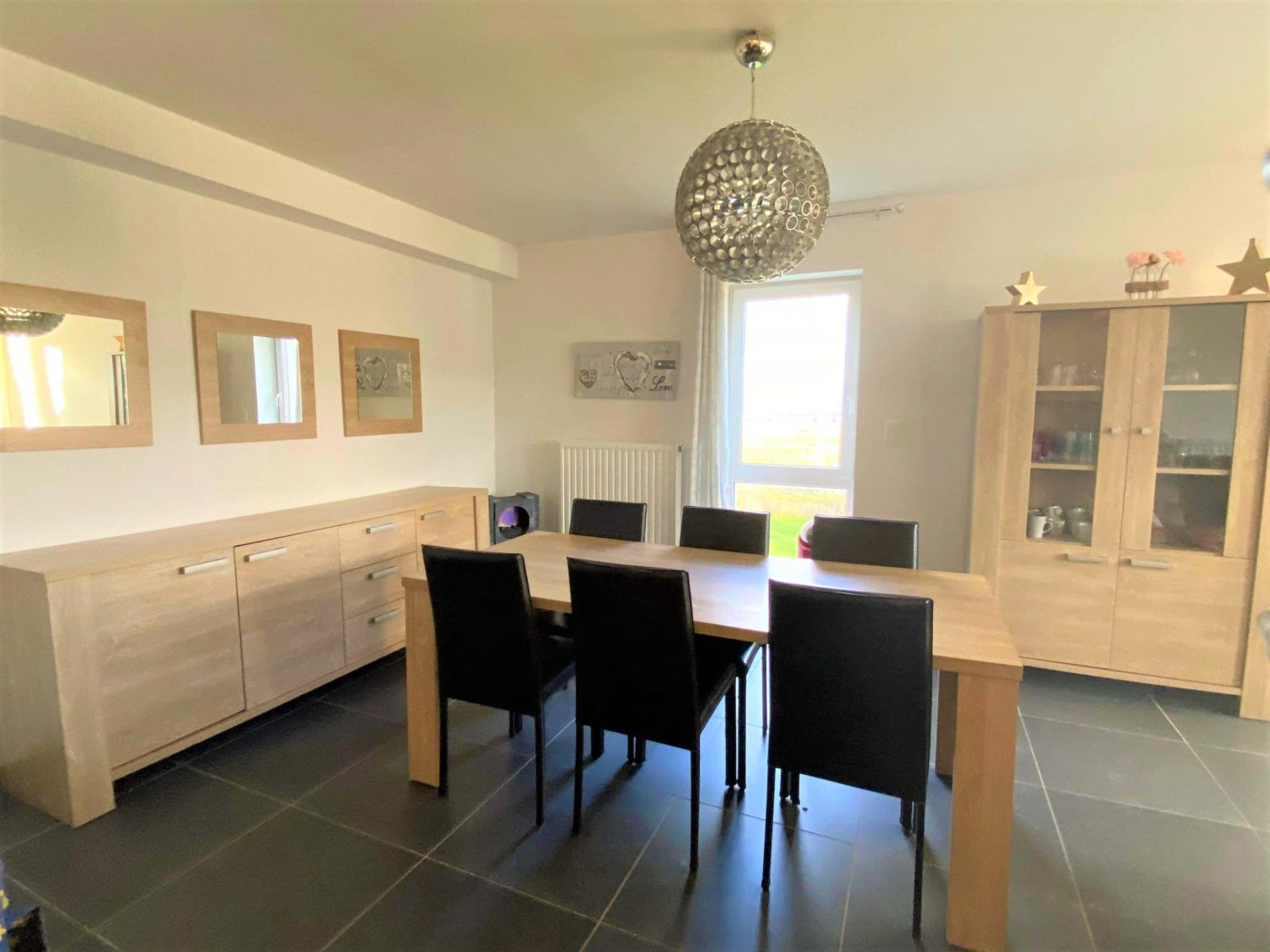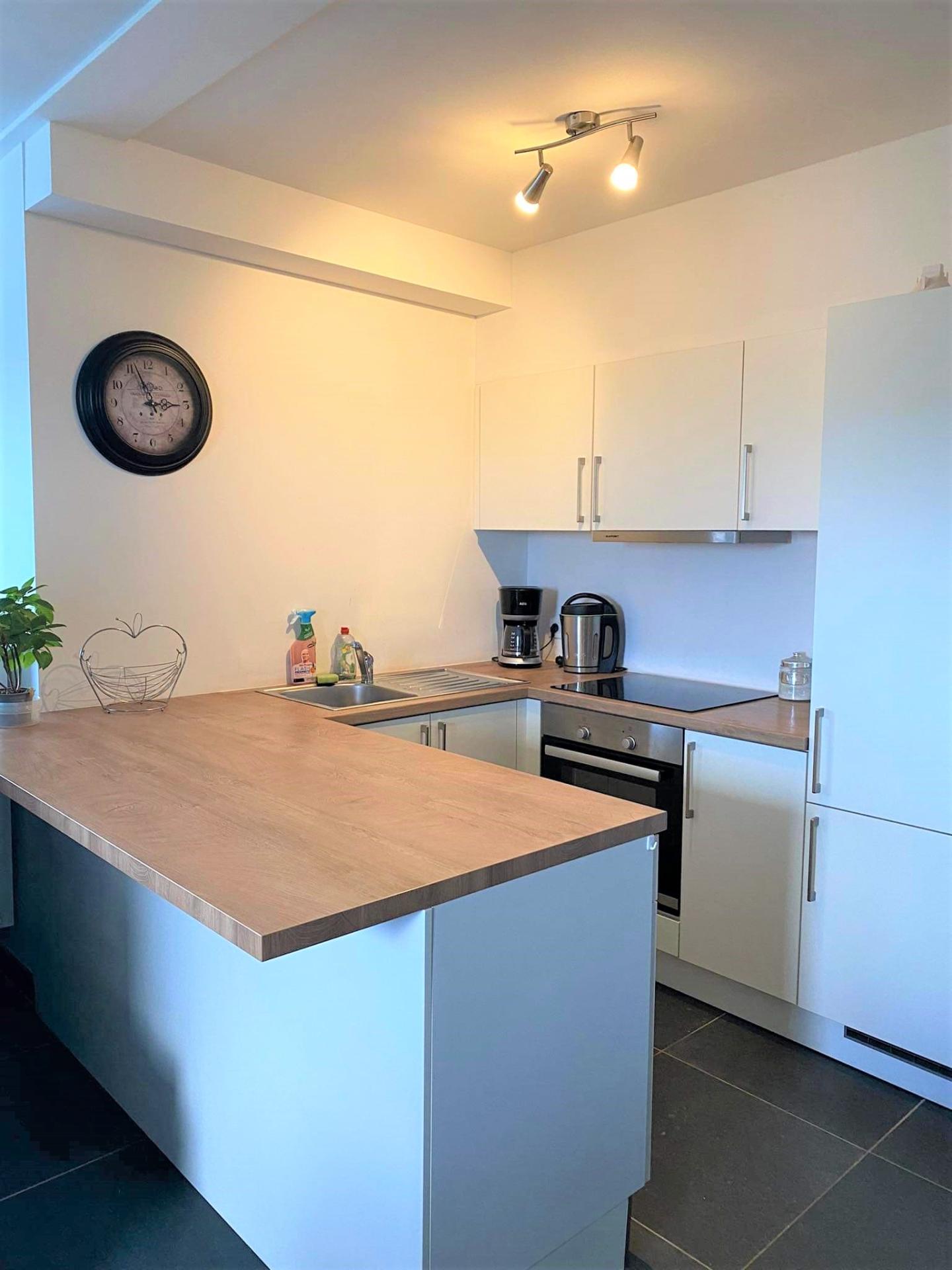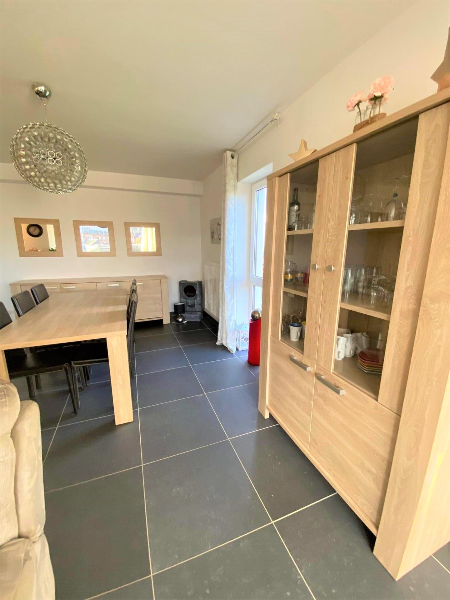 - un hall d'entrée, un beau séjour ouvert sur une cuisine équipée (four, frigo, hotte, plaque vitrocéramique, lave-vaisselle), 2 chambres, une salle de douche (douche, meuble lavabo), une buanderie, et un WC.