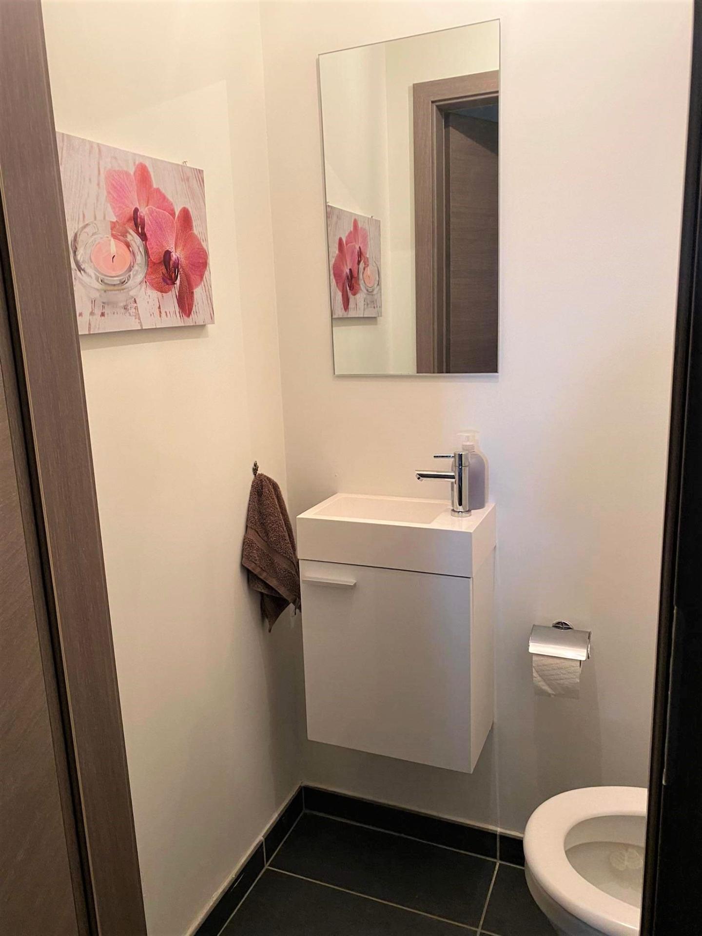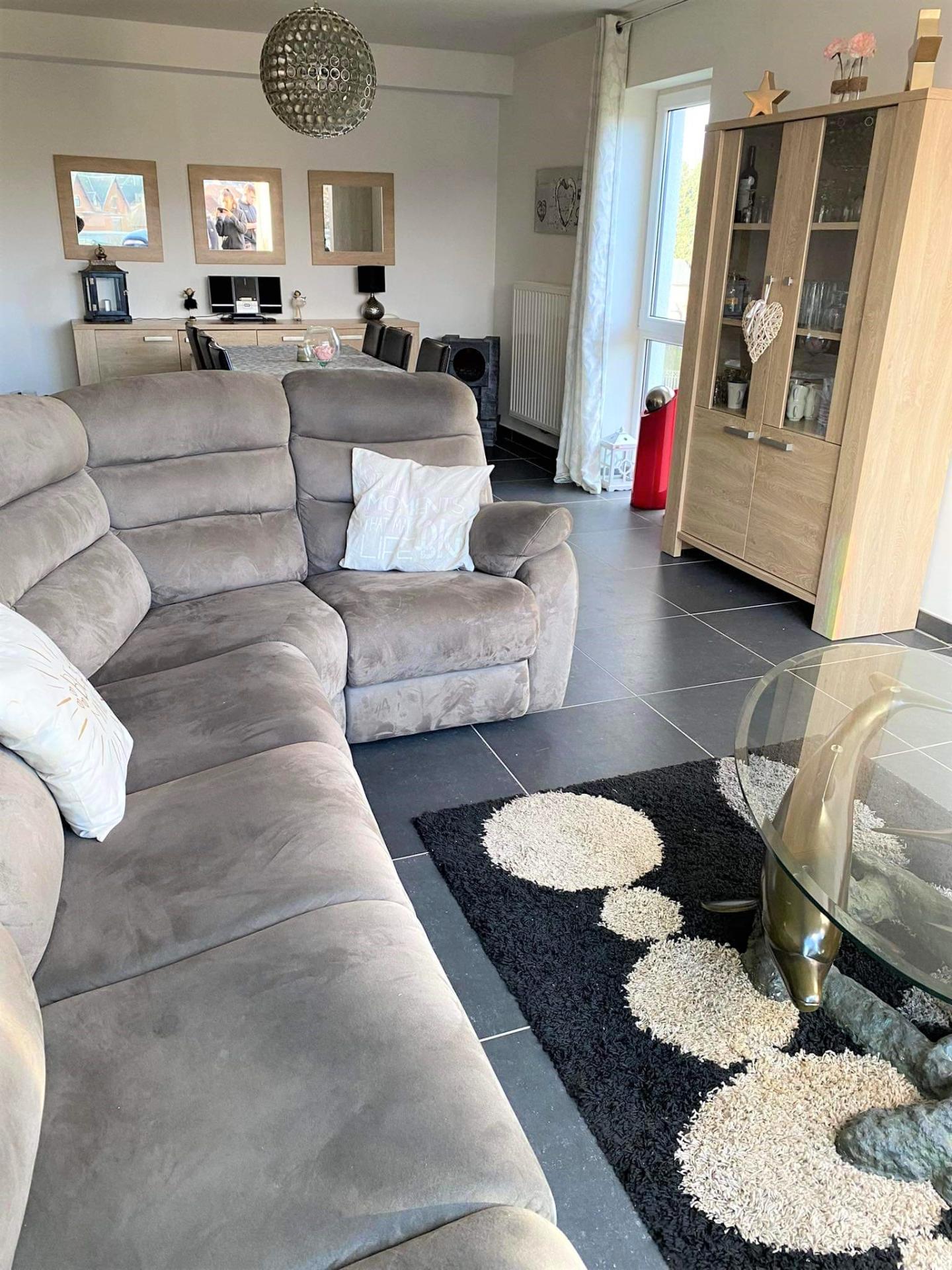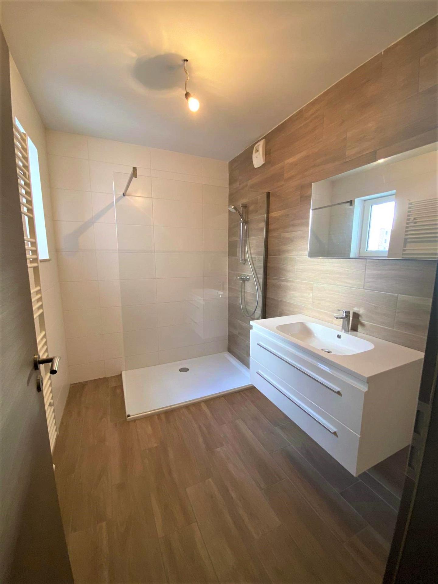 - un hall d'entrée, un beau séjour ouvert sur une cuisine équipée (four, frigo, hotte, plaque vitrocéramique, lave-vaisselle), 2 chambres, une salle de douche (douche, meuble lavabo), une buanderie, et un WC.