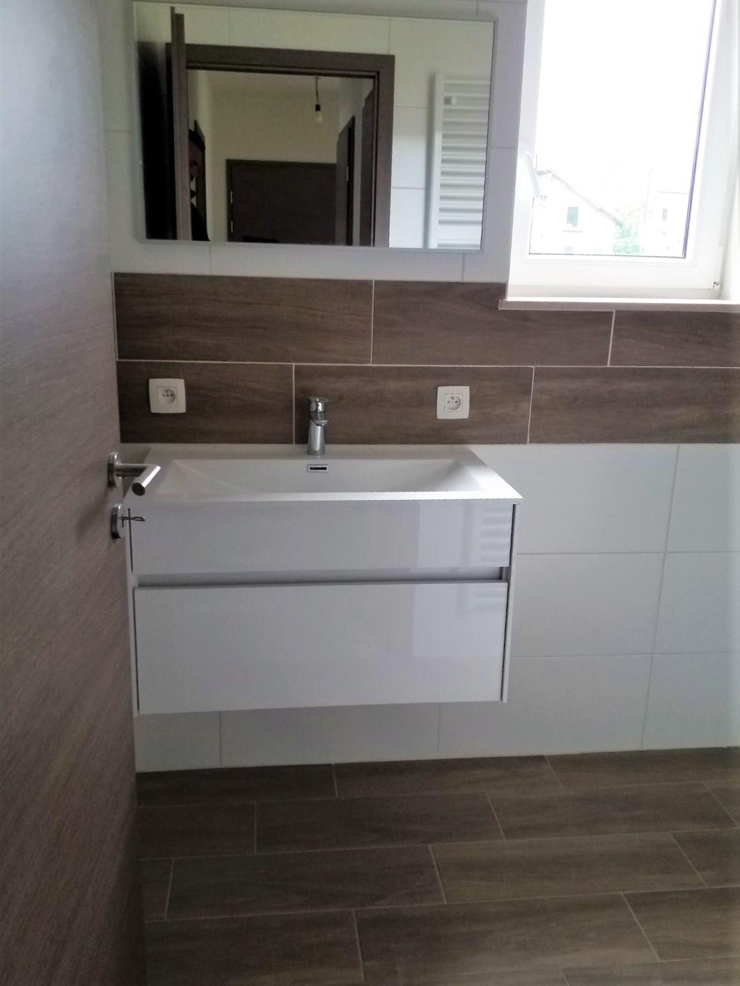 baignoire et meuble lavabo, 2 chambres et une terrasse avec petit jardin.