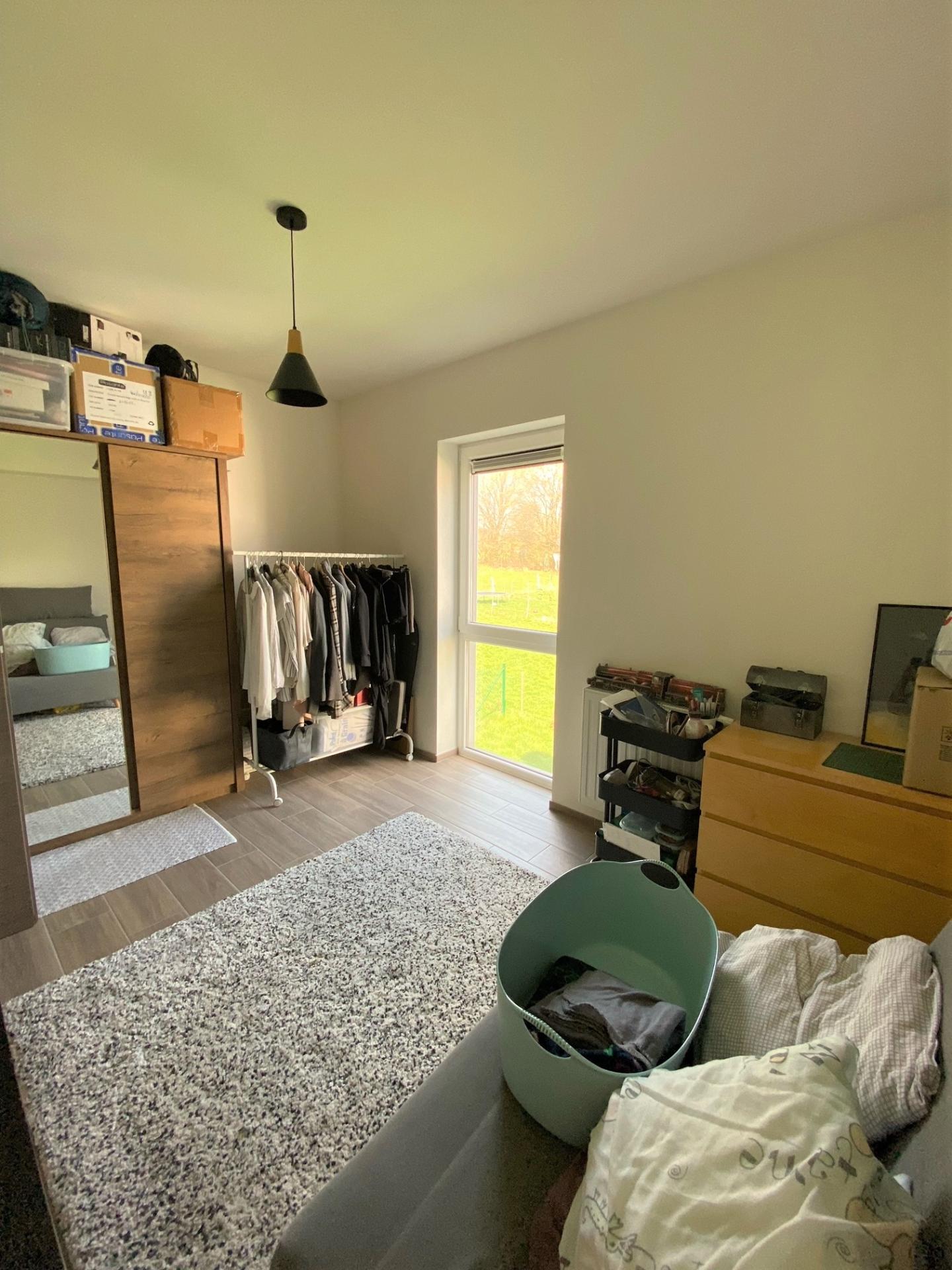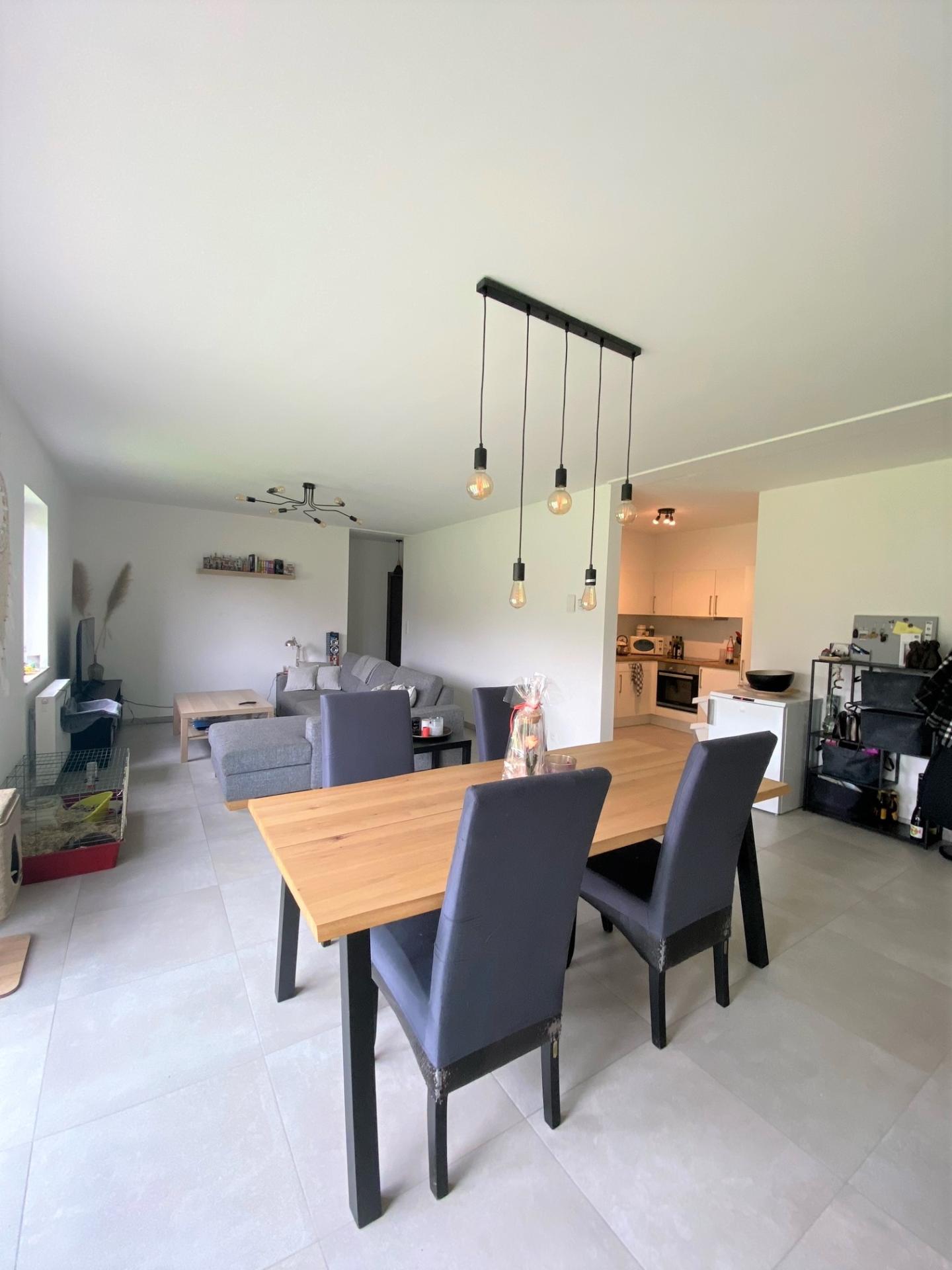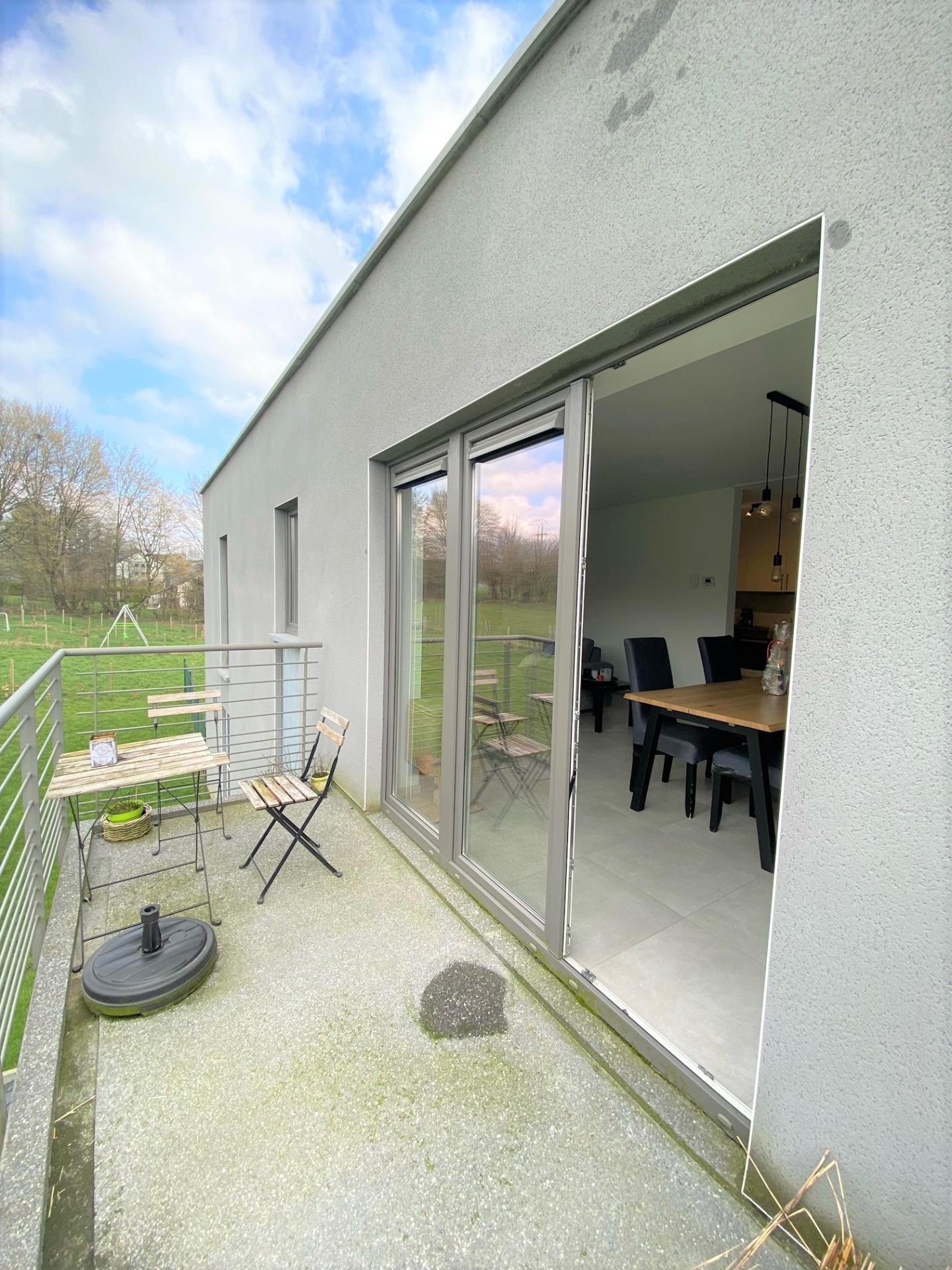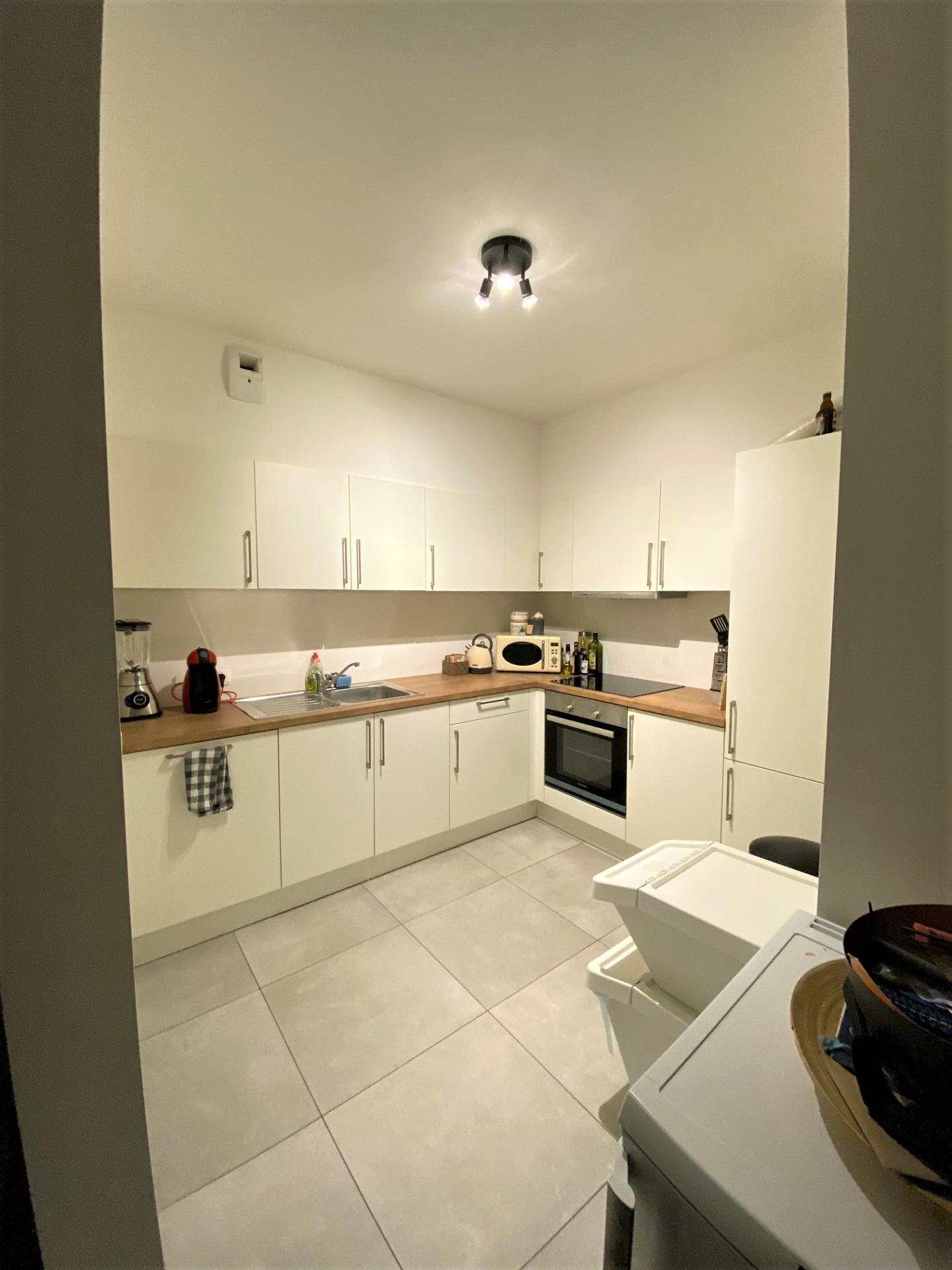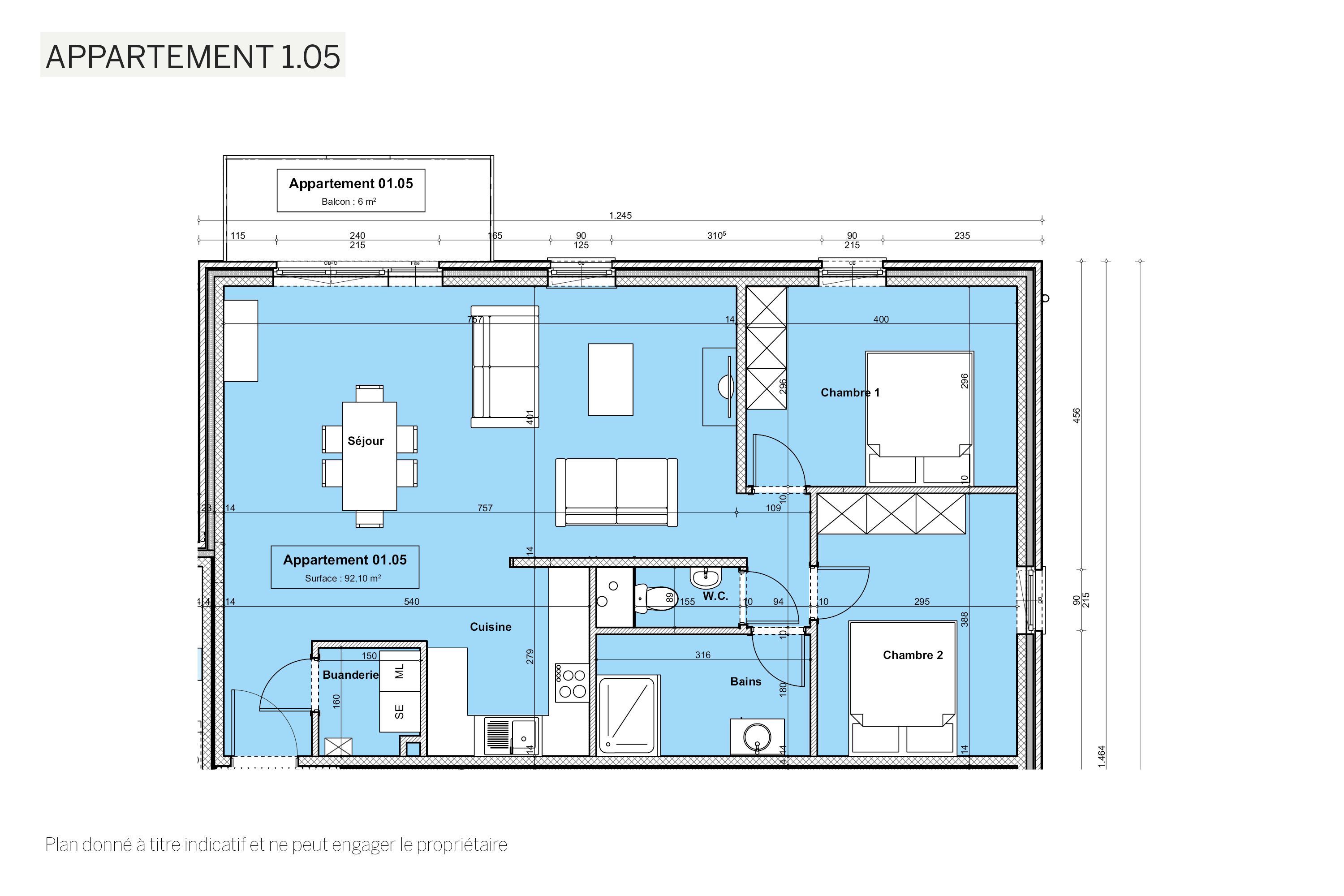 un hall d'entrée, un grand séjour avec cuisine équipée ( four, frigo, hotte, lave-vaisselle, plaque vitrocéramique ), une buanderie, un wc, une salle de bains avec douche et meuble lavabo, 2 chambres et un balcon.